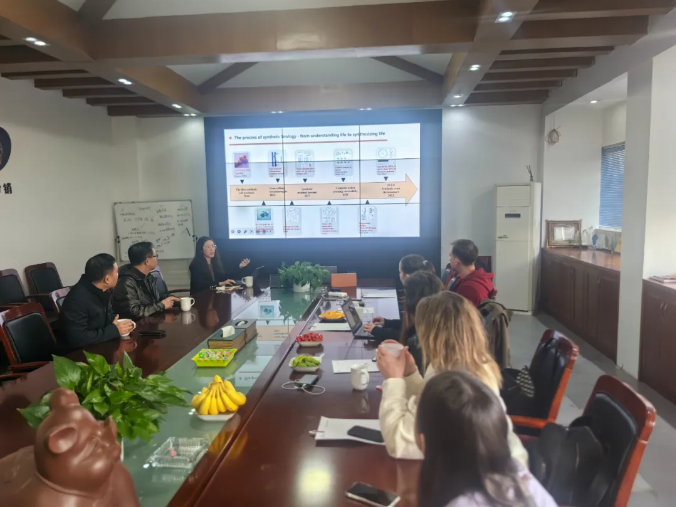 参观后,双方在会议室展开进一步的沟通讨论。技术部总经理李慧围绕益生菌和合成生物学产品,分享研究经验和未来方向。在益生菌讨论中,双方深入探讨菌株特性与应用潜力,结合波兰团队的自身经验技术,激发创新灵感。合成生物学产品讨论中,双方对惠嘉最新研发的产品应用前景充满期待,拟在未来开展更多的沟通和合作。